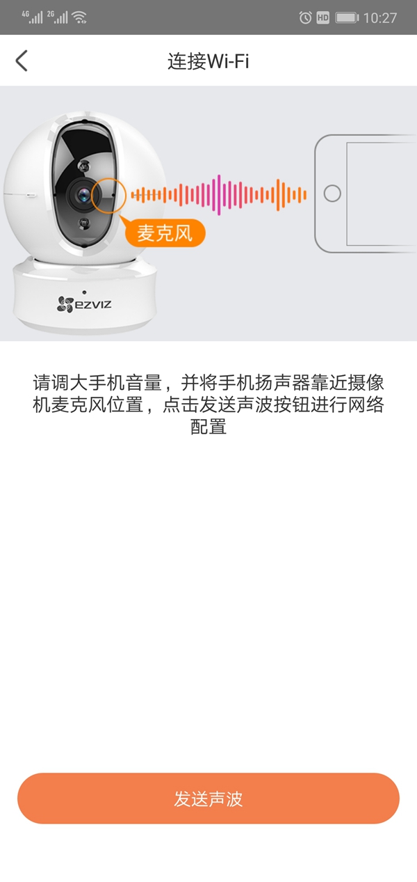 點擊“發送聲波”靠近攝像頭,設備會自動連接。如果有多個攝像頭,在攝像頭通電的狀態下,重復第三步。